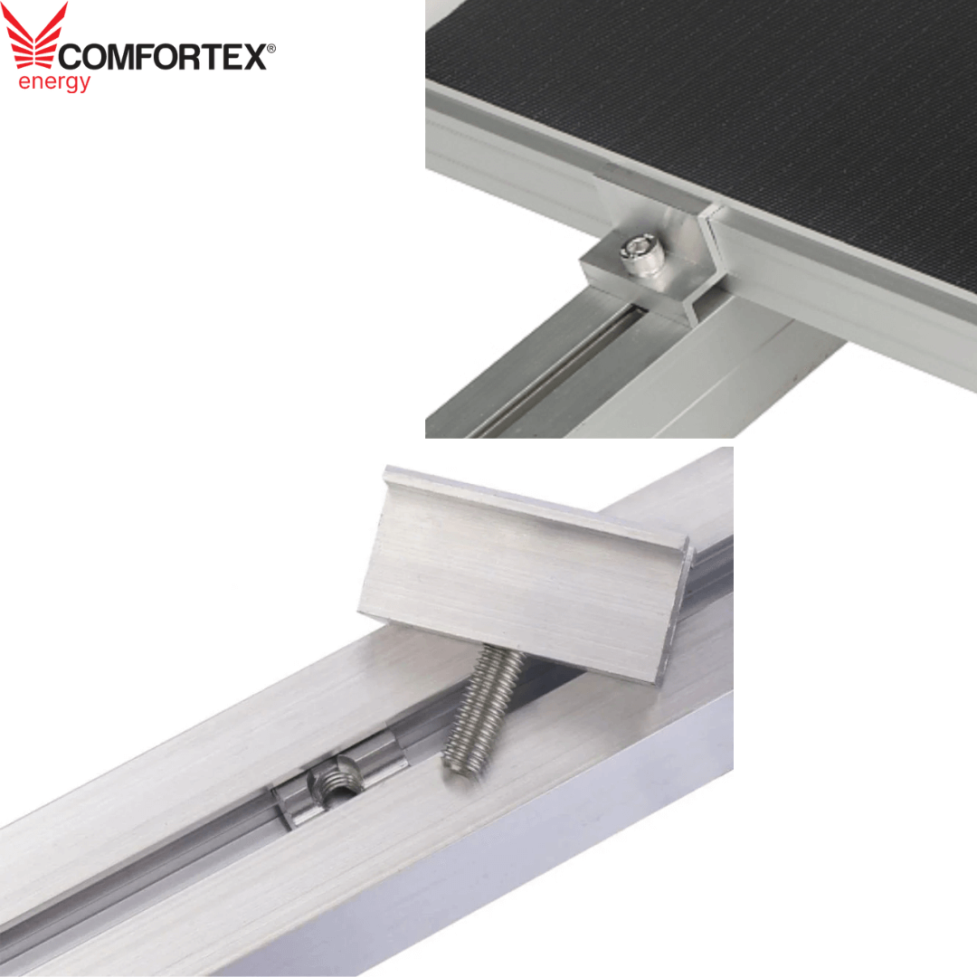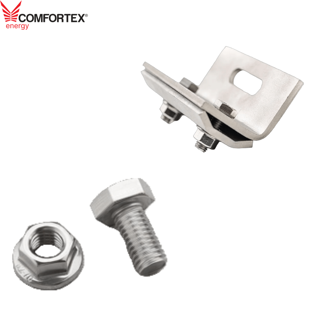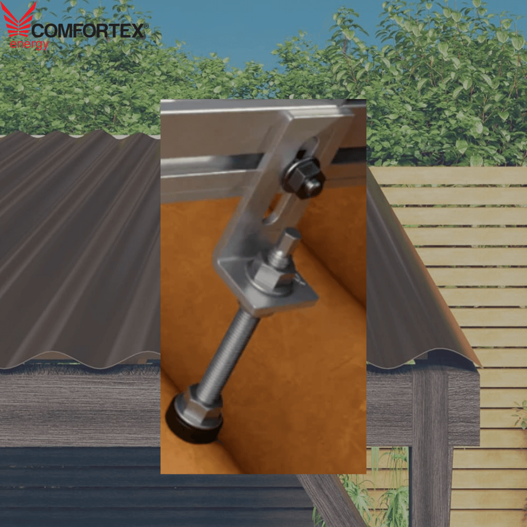 Intr-un sistem fotovoltaic, fiabilitatea si performanta depind in mare masura de calitatea componentelor de fixare utilizate. Un kit complet Comfortex Energy include elemente fixare panouri solare care asigura o instalare rapida si sigura. Acestea se pot utiliza, in special, pentru acoperisuri metalice, precum acelea din tabla, tigla metalica sau sindrila bituminoasa.