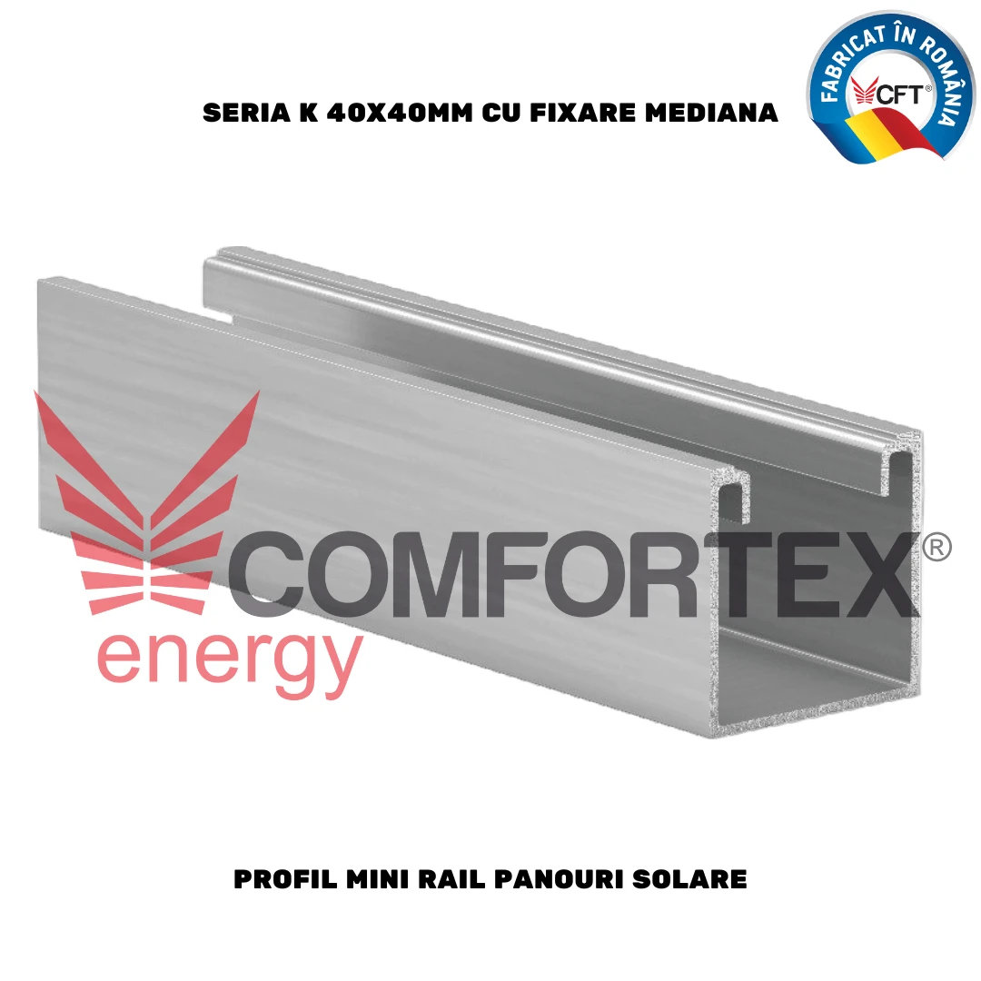 Seria K Mini Rail este un profil de montaj special conceput pentru a asigura instalarea eficientă a panourilor fotovoltaice pe acoperișuri metalice, inclusiv foi trapezoidale și țiglă metalică. Acest profil este ideal pentru sistemele de montaj care necesită o soluție de fixare rapidă și sigură.