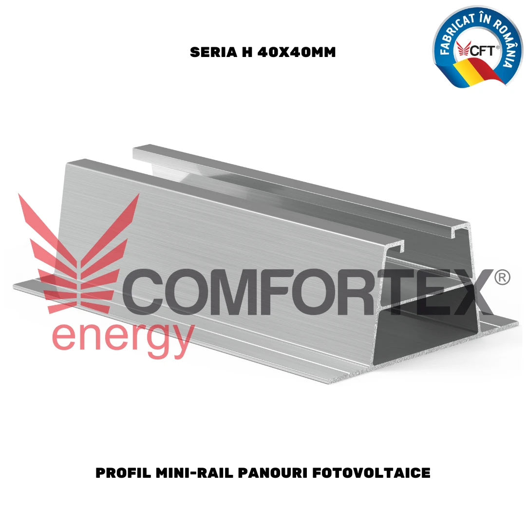 Profilul Mini Rail seria H 40x60MM, este proiectat pentru instalarea eficientă și sigură a panourilor solare fotovoltaice pe acoperișuri din tablă trapezoidală sau țiglă metalică. Acest tip de profil, facilitează montajul și asigură stabilitatea pe termen lung. Acest profil de prindere panouri fotovoltaice este fabricat din aluminiu de înaltă calitate, rezistent la coroziune și condiții meteo extreme.