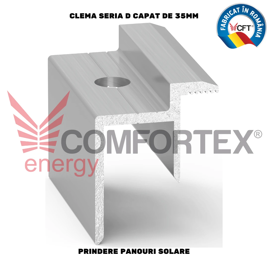 Clema de capăt Seria D este un element esențial din sistemul de montaj fotovoltaic, destinat fixării panourilor fotovoltaice la capătul profilului de aluminiu, pentru a menține panourile solare în poziție și a preveni mișcarea acestora.