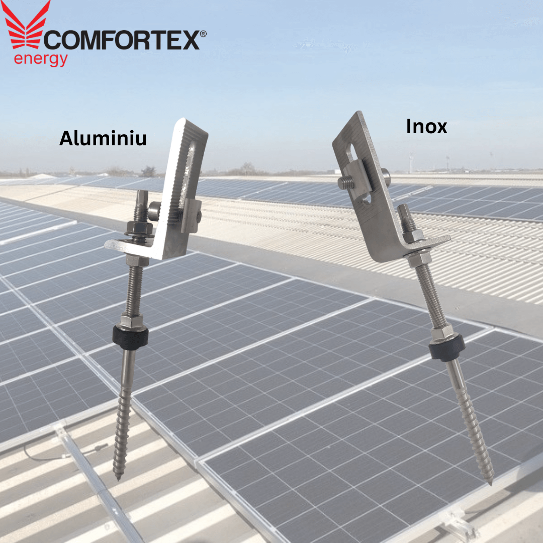 In primul rand, un sistem de prindere trebuie sa aiba o flexibilitate ridicata, astfel ca elementele de fixare trebuie alese pentru a se potrivi la diferite tipuri de acoperisuri si invelitori, de la tabla cutata la acoperisuri din beton. Tocmai de aceea, la Comfortex Energy am dezvoltat solutii care sa raspunda acestei nevoi, in portofoliul nostru fiind disponibile componente pentru utilizare industriala, cleme si profile pentru prinderea panourilor solare, cârlige din oțel inoxidabil cu bandă EPDM, kituri cu șuruburi Hanger Bolt și profile extrudate din aluminiu. Toate acestea asigura un montaj rapid, sigur si fara sacrificarea etanseitatii acoperisului.